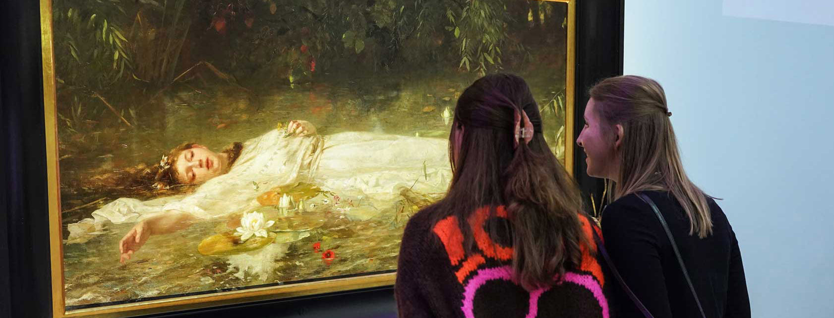 Etwa fünfzig Jahre später griff Heyser das Thema erneut auf und schuf eine eigenständige, geheimnisvolle Neuinterpretation. Sein wahrscheinlich um 1900 entstandenes Querformat bezieht sich in der Komposition deutlich auf das Werk von Millais, verwandelt es jedoch in die Darstellung einer jugendlichen Schönheit, die im Kreislauf von Leben und Vergänglichkeit aufgeht. Die Popularität der Präraffaeliten — mit ihrer einzigartigen Verbindung von Natur und Ornament — prägte viele Künstler:innen des Jugendstils und fand auch in Heysers Werk ihren Widerhall.