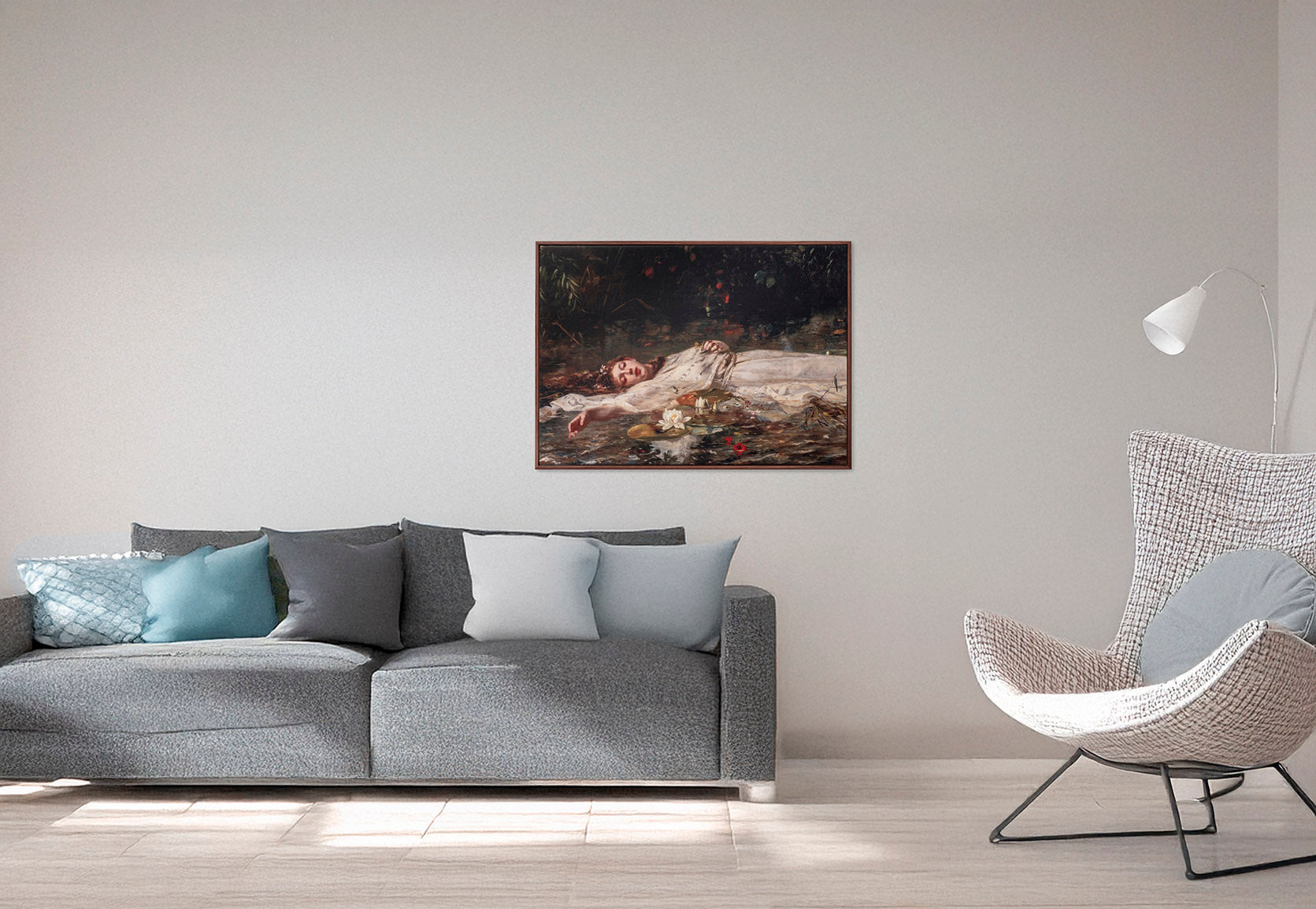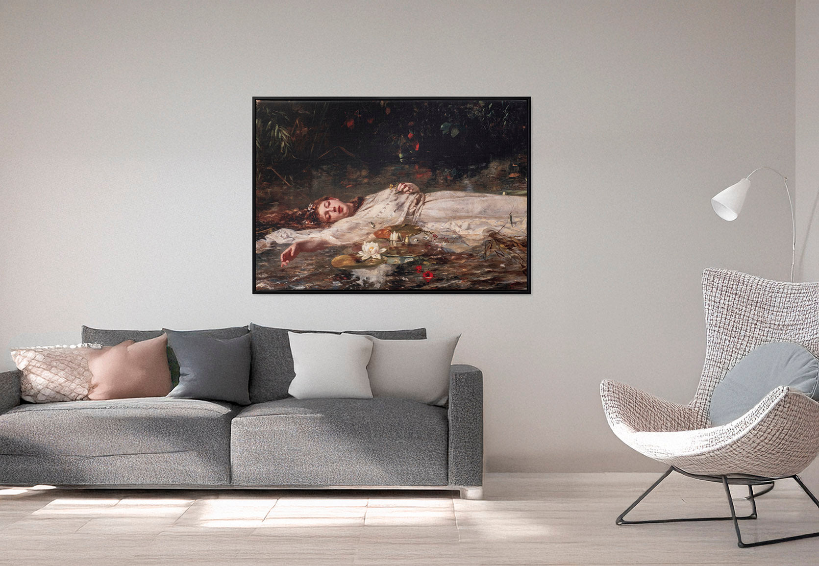 Geben Sie Ihrem Leinwanddruck den richtigen Rahmen. In einem Schattenfugenrahmen aus Kiefernholz präsentieren Sie Ihre Ophelia hochwertig. Bei uns in drei Ausführungen erhältlich: Schwarz, Nußbaum und Natur.