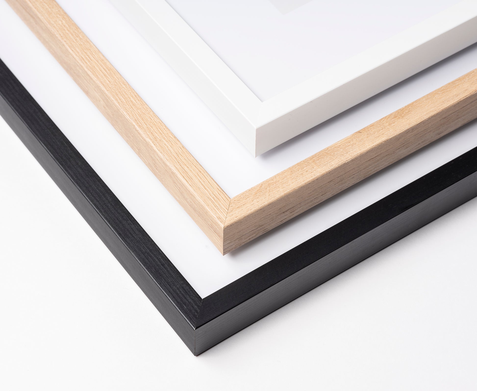 Premium Fine Art Druck auf ein 308 g Hahnemühle Fine Art Papier mit leicht haptischer Oberfläche. Unser Rahmen werden aus natürlichem Kiefernholz gefertigt und sind in drei Farbvarianten erhältlich: Weiß, Schwarz und Natur.